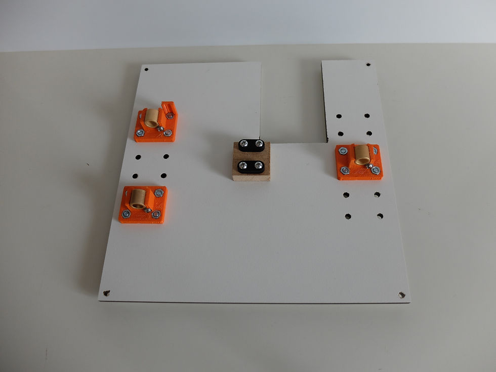 Die 3-Punkt Befestigung23. Mai 20201 Min. LesezeitAktualisiert: 24. Mai 2020Wie gesagt, habe ich mich zuerstmal für eine 3-Punkt Befestigung entschieden. Die HPL-Platte hält das Hotbed.